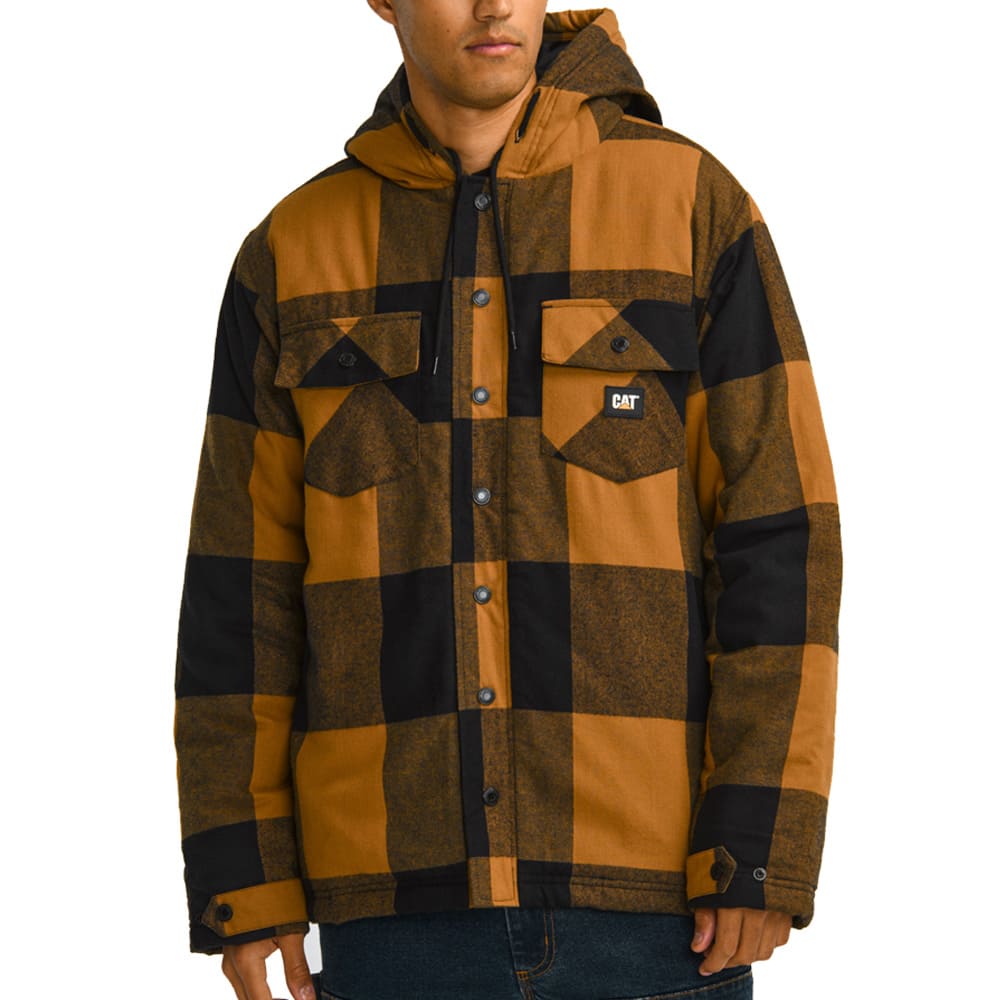 The Cat Workwear Hooded Flannel Shirt Jacket is built for the modern worker who needs style and performance in one. With a bold logo label on the left chest pocket, a snap front placket, and adjustable cuffs, it offers a sleek, functional fit. Ready for any task, this jacket combines rugged durability with smart design.