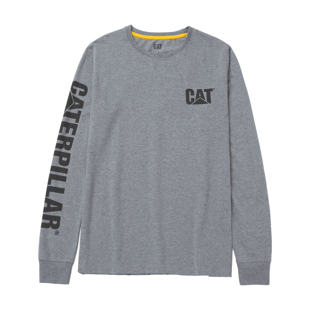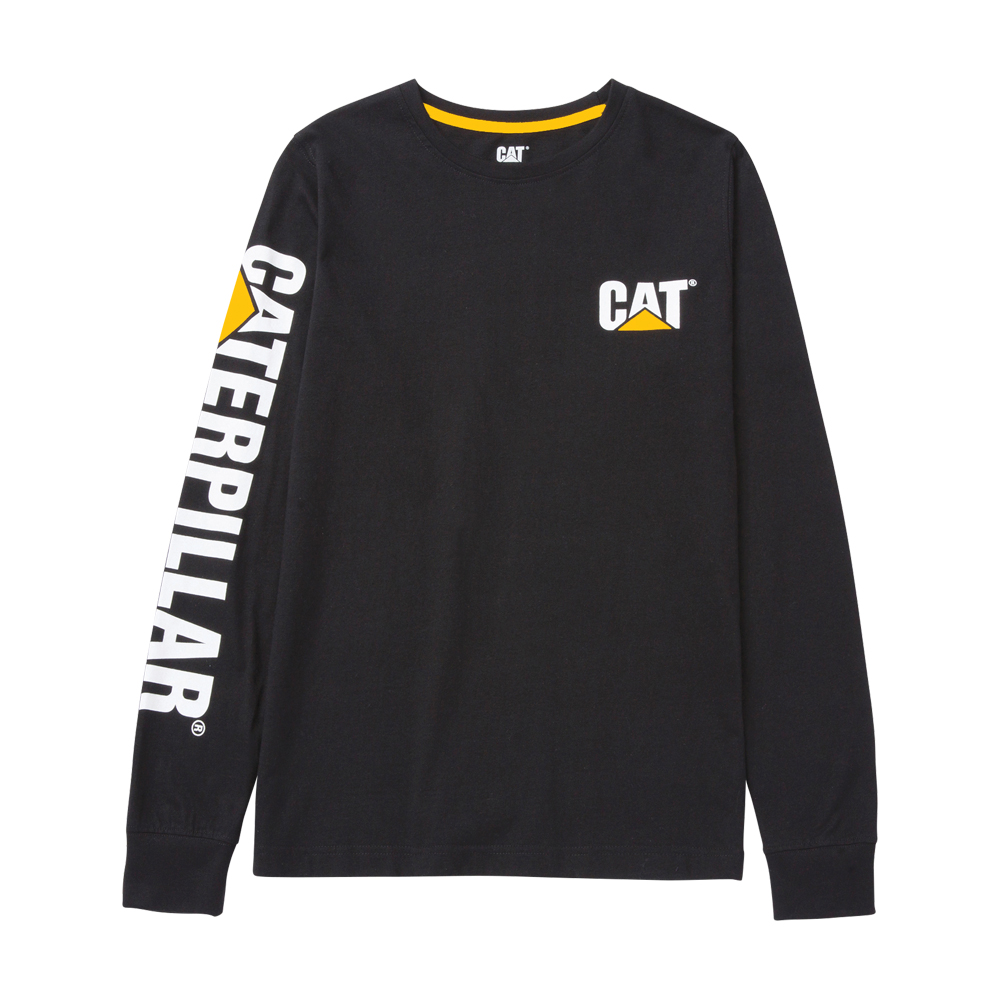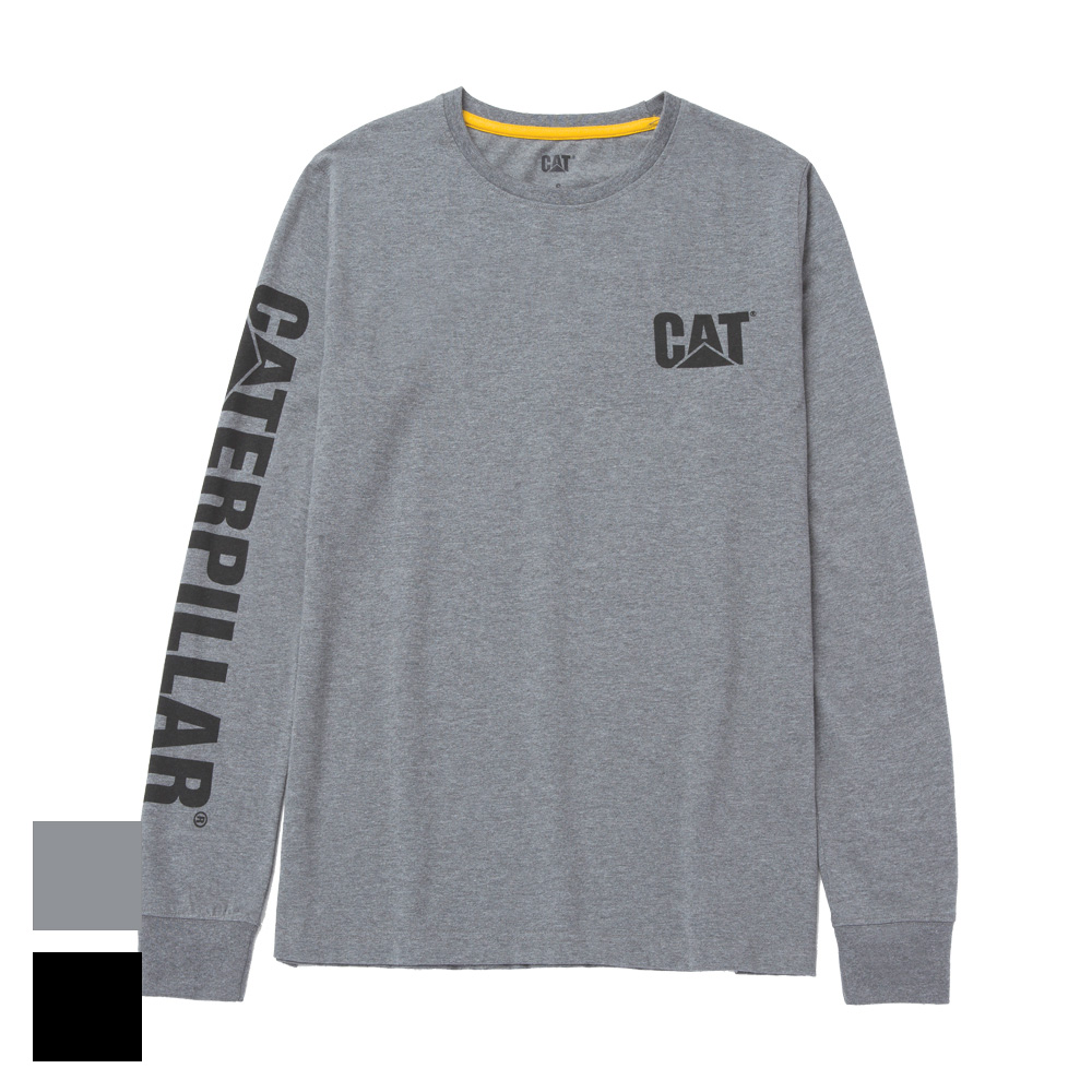 The ultimate Women's Trademark Banner Long Sleeve Tee, designed to stand out with the iconic CAT® logo on the chest and the full CATERPILLAR® trademark boldly displayed along the sleeve. A true symbol of durability and style.